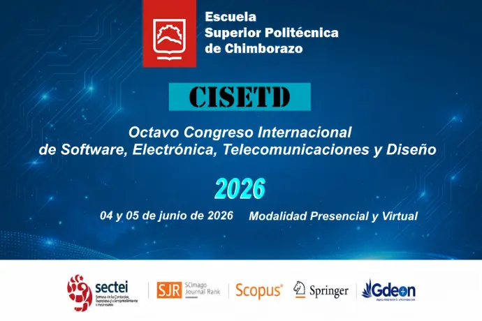 Bienvenidos al 8vo Congreso Internacional de Software, Electrónica, Telecomunicaciones y Diseño que se celebrará en Riobamba, Ecuador en modalidad hibrida (Presencial y Virtual) del 4 al 5 de junio de 2026.